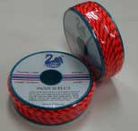 鉄の8-10倍、アラミド繊維の1.4倍以上(質量比)の強度。スペクトラダイニーマロープ(ダブルブレード)。